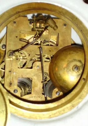 white porcelain case with flower decoration in nice condition with some wear to the applied gold. Gold finish dial is in generally clean condition. Ha...