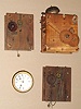 Box of 4 movements: mixed lot of two Terry type 30-hour wood shelf clock movements, French 8-day movement and dial and an Ashby type 30-hour tall clock movement.