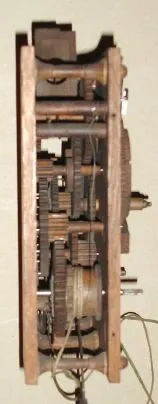One of the shelf clock movements is missing the second wheel in the strike train and a verge. The other movement has a broken great wheel in the strike train. French movement is missing the strike hammer, however is otherwise complete and with nice porcelain dial and orig gilt hands. Ashby tall clock movement is complete, except for the intermediate wheel for the calendar and the two brass inserts that support the verge.