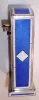 Swiss, miniature mantel clock, Royal Blue guilloche enamel over hallmarked silver, and with contrasting white strips and a white diamond shaped inset on each side, with rear wind and set lever movement, C.1935
