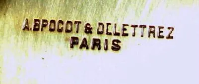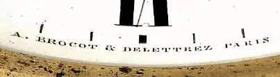 French, Black marble mantel clock with day and date calendar plus moon-phases on the dial, pat A. Brocot and Dellettrez, signed on movement and dial below 6, C.1890 there are hairlines in the dial at 1 and 8, the winding grommets are absent from the dial center, dial itself is clean, and signature is clear, hands are original; Height 16 inches