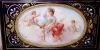 Austrian, Royal Vienna, portico clock with small 8-day timepiece, in a blue cobalt case with hand painted cameos of ladies and cherubs, C.1890