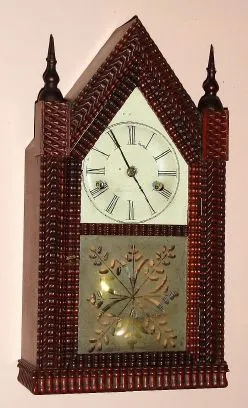 C. 1848, J. C. Brown, Forestville Manufacturing Co., Bristol, Conn., miniature ripple steeple clock with its original signed 30-hr time and strike movement.
