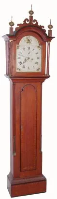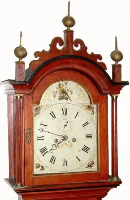 Unsigned New Hampshire tall clock, 8-day brass works, painted dial, in a cut-off case. C.1830.