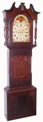 English, Yorkshire area tall clock, wide case with short door, and with 20" rolling moon dial, 2-wt, 8-day, C.1840