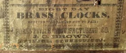 J. C. Brown (Forestville Manufacturing Co.), Ripple Molded round Gothic or Beehive, 8-day time and strike, spring. C.1845 Dial has been professionally repainted, including a crazed finish and applied signature. Refinished rosewood veneered case in very nice condition. Bottom glass is original, but most of the decoration is gone. Hands are not original. Spring on the time side is broken. Movement is stamped: "J. C. Brown". J. C. Brown label is a little worn and darkening, still legible. Height 19 inches