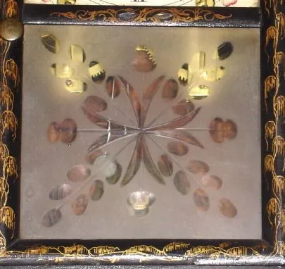overall excellent original condition,, with all MOP and the stenciling intact. A great painted, signed dial with fading but still legible signature and good floral corners. Good label. A fine example of this model with uncommon label. Height 16.5 inches