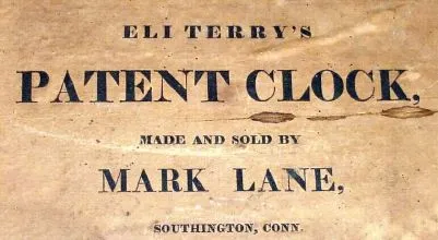 Mark Lane, Southington, Conn, short transitional column and splat, 1-day wood works, 2-wt, C.1830 the stenciling is worn off the columns, there is a crack in the original tablet, and one toe is knocked off. The clock is otherwise in very good to excellent original condition. See NAWCC Bulletin, 4/99, No. 319, pg 168, figs 5A-B for similar clock; ours is 90% better than that illustration. Orig gate latch on door, works well. Height 28 inches