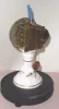 S. N. Botsford, Southington, CT. 30-hour candlestick, timepiece movement atop glass stand, Botsford made these at the Union Labor Company, this info will be in new Spittler + Bailey "American Clockmakers" Circa 1860 a clean clock with period dome. Milk glass stand has a crack running from top to bottom; facing rear; there has been no attempt to glue the crack, which might /? be considered. Paper dial is original with some slight discoloration and a very small stain. Hands are original. Figure mounted on top of the pendulum is new. Many collectors incorrectly identify these clocks as those from Terry Clock Co., Height 8.5 inches