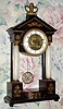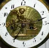 overall very good original condition. Austrian clocks are often neglected and this one has survived well. There are hairlines in the porcelain dial and some repairs at the attaching holes. Although we tend to see the Grand Sonnerie models with double animation {examples in Kaltenbock's "Viennese Timepieces", pages 167-9}, the hour strike automatons do not turn up that often. Ht. 16"