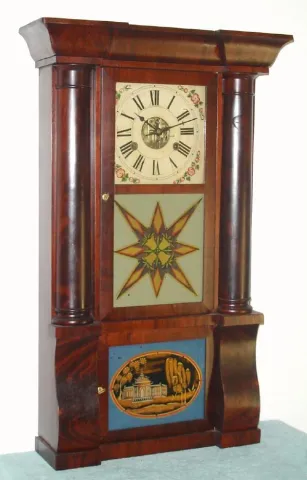 Birge and Fuller, Bristol, Conn., Circa 1840, 8-day time/strike column and cornice shelf clock.