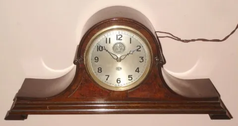 mahogany veneered case in very clean condition in an original finish wigh some minor blemishes. Original silvered dial some minor tarnish. Hands are original. Original cord is starting to fray, and for safety should be replaced. Ht 9"