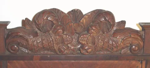 Case only, Samuel Terry, C.1835, carved column and splat. Note very unusual twisty carved columns and well detailed double cornucopia splat.