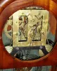 J. C. Brown, Forestville Mfg, Forestville, Conn, four poster gothic w/ ogee top (some call it onion top) case, with well figured mahogany veneer and with cut glass tablet, 8-day FUSEE, C.1848, the case has been nicely refinished and is in good condition; there are 2 veneer repairs along the base.. The original dial is excellent and the original label is excellent. The movement has been professionally cleaned and is in good running order. This is the same fusee movement used in the small shelf acorn, see Ken Roberts on Connecticut Clock Technology, page 255. Ht 20"