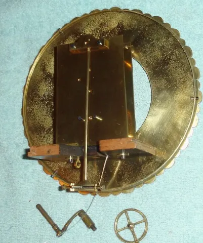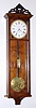 the rosewood and grained case has been refinished and the molded top trim is new. Early pendulum is brass both sides; note bob is perfect, but lacquer has crystallized producing an odd foto. Movement has been cleaned and running dial excellent, good signature. Has old glass with grains and fish eyes. For similar clocks, see Kaltenb/dcks book titled "Viennese Timepieces", page 212. Ht 37"