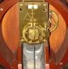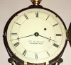 T. E. Burleigh Jr., Winchester, Mass., reproduction presentation banjo timepiece with time only weight driven movement in mahogany case with gilt rope front and reverse painted tablet depicting the ship's United States and Macedonian in a gun battle from the War of 1812 with Roman numeral painted dial, c1980 like new condition. Ht 42"