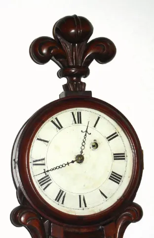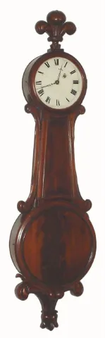 Vermont area, Mahogany Girandole with crotch mahogany throat and door panels, 8-day, weight, time, possibly by J. N. Dunning, C. 1830, and with restorations.