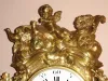 French, Martinot, Paris, very large ormolu cartel clock, the case surmounted by a cherub having spilled out of a chariot pulled by a swan, the bottom of the case showing a reclining Zeus with an eagle at his side, 8-day, time and strike.