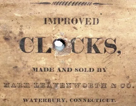 Mark Leavenworth, Waterbury, Conn, "Pillar and Scroll", wood movement shelf clock, 1-day time and bell strike, C.1825