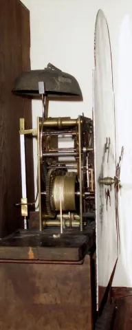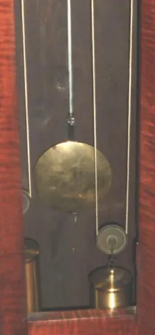 this is an old movement and dial in a modern case, with modern pendulum and weights. The fit of the joints and doors is excellent, the case surface itself with minor roughness to the touch. Movement is complete and sound, ticks and strikes. Ht 91"