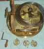 this case has been nicely polished to a high sheen. There is no evidence [no holes] to indicate it ever had a top, however there is a vacant hole in the base where it had a bottom finial. The movement has been cleaned and polished to the highest standards and is in good running order. Mov't is on a slide mount, always been that way; 2 misc stray holes in case back. Dial is perfect and hands are original. The rt side glass is loose inside case, and it appears just slightly too wide to fit in the slot. Ht. 44"