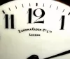 the brass base is lightly oxidized, the dome has one long crack near the base, the porcelain dial is perfect. Ht 12" without dome,