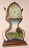 Acorn Shelf Clock, C.1848, case most likely by J. C. Brown, now with an unsigned Boardman style 1-day fusee movement, the old back-board showing filled holes. there is no label; case refinished; repainted dial pan has some age; the lake scene tablet was done maybe 50 years ago, and now flaking in several places. The movement is complete and sound, and is running. Ht 24.2"