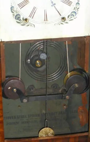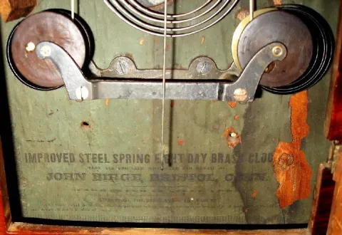 John Birge, Bristol, Conn, rare OG in 3/4 size case, with detached fusee, 8-day time and strike movement, in a well figured mahogany veneer case.