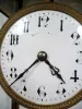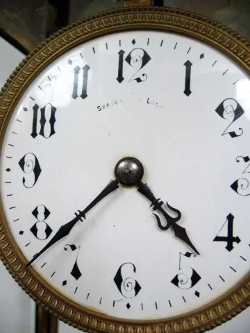 This clock was in storage for many years and the case needs a good cleaning but there are no case dents or other damages. The 4 beveled glasses are just about perfect but for one tiny corner flake in the rear glass. The porcelain dial is perfect with no hairlines or chips. Original hands and pendulum with no dents or damages. The movement is not signed but has a serial number of 1288. It has not been serviced in many years but it does tick properly, it just does not stay running. 11" tall.