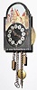 E. Ingraham Clock Co. oak kitchen clock. Not a bad clock except for the dirty worn paper dial. The case is 22" high, only slightly dirty on the bottom, I assume he cleaned this one but put no polish on it. Original glass, pendulum dial, hands, gong, and 8 day movement. No label, no name, did not see this clock pictured in Ly-Ingraham. It is running and striking the gong on half hours and hours.