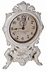 Novelty-alarm clock. Metal case painted white with some gold highlights, stands 9.5" high.