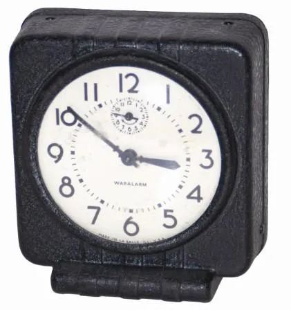 Waralarm" alarm clock made in the USA during the Second World War. No metal was used, case made of a bakelite type material.