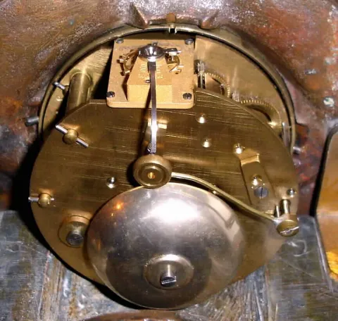 Good running order, replaced platform escapement, the dial may be a replacement, the case has several hairlines a couple of minor repairs (mostly in the rear). The bronze figures and mounts are very nicely patinated. Ht 9 1/2"