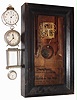 Clocks- (2) alarm clocks: a Gilbert, another small clock, an ogee case and movement a clock statue and a carriage clock case only with only one glass