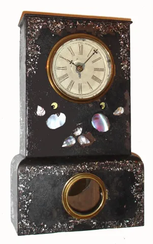 Original black paint with some losses, large MOP pieces in place along with unusual use of numerous small flecks for the decoration. Original painted ...