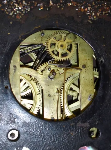 Unsigned Connecticut iron-case 8-day time and strike mantel clock, C.1855.