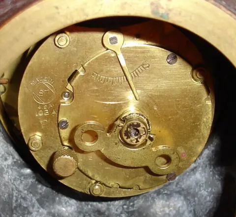 Silvered brass dial is clean with some loss of silver to expose some of the brass beneath. Hands are original to the movement. Movement is signed with...