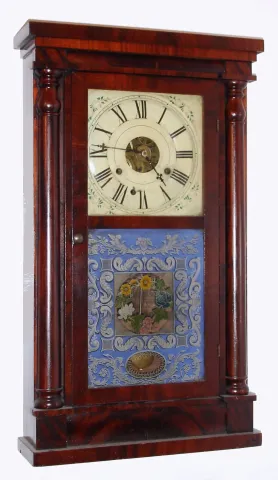 R. E. Patterson and Co., Toronto, Canada West, C. 1850, 30-hour time/strike/alarm weight driven column and cornice shelf clock.