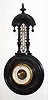 Ebonized hardwood case in nice condition with a small piece missing on the back side of one the columns that supports the thermometer. It is not visib...