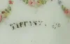 Polished oval case in clean condition. Original porcelain dial has a minor dark hairline under numeral 3, and part of the Tiffany signature is worn off. Fancy hands are original. Movement is signed. The front door has a small chip on the corner of the beveled glass. The other glass panels are fine. Overall very good condition. Height 11.5 inches