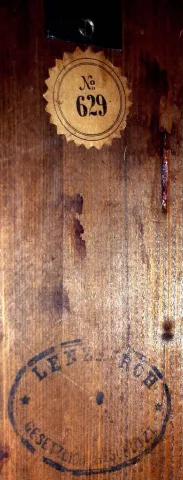 the case has an old refinish. The small fleur-de-lis carving below the center splat appears to be made to match, and is well done. The dial is in very good condition minor discoloration around 7 from setting the hands. Mov't is properly signed with Lenzkirch logo, and is running. Height 42 inches