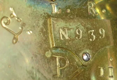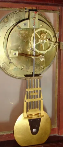 Fine mahogany case with ormolu mounts in very nice condition in an old finish. The rear glazed door with restoration. Original porcelain dial is perfect and the hands are original; good Le Roy signature on dial. Nice lyre form grid iron compensating pendulum. The movement properly signed and with number 939. Height 20 inches.