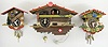 3 German Cottage Pendulettes: 1 musical Swiss; 1 Linden; 1 West Germany. (Ledge is off the clock with a mushroom on it.) Largest 5"