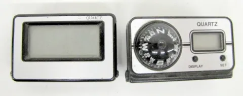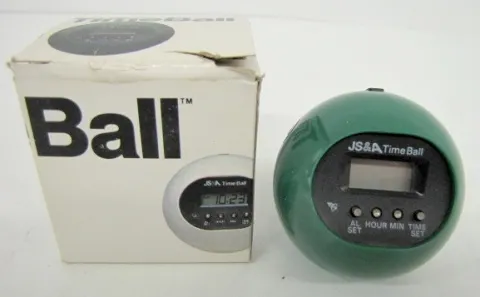 Group of 8 Clock Related Items 8 Clock Related Items: 4 antique miniature clocks in original boxes; JS and A Time Ball in original box; Avon on the go travel alarm clock in original box; 2 other digital clocks. Not tested for running condition; all sell in as is, as found condition.