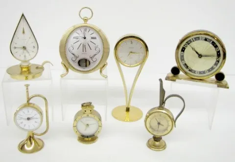 Group of 7 Brass Novelty Desk and Alarm Clocks
