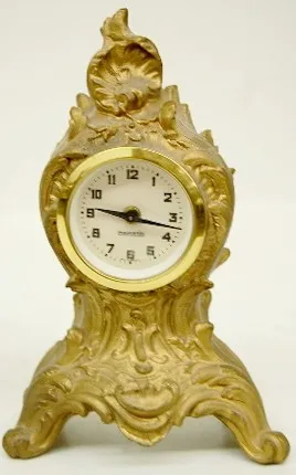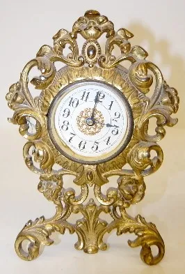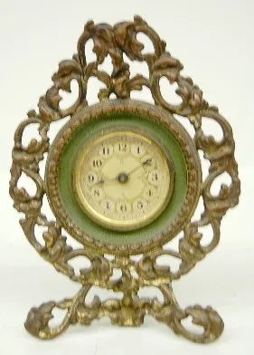 3 Iron Case Clocks: 1 Mercedes Germany; 1 fancy trim on dial; 1 with paper decorated dial. (Last listed does not work.) Tallest 9"