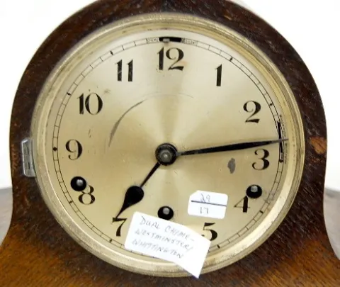 2 Dual Chiming Westminster Chime Mantle Clocks 2 Dual Chiming Westminster Chime Mantle Clocks: 1.) Oak case; 8 rods. (Case has a few nicks.) 2.) Oak case; 8 rod. (Hammer missing; no bezel.)