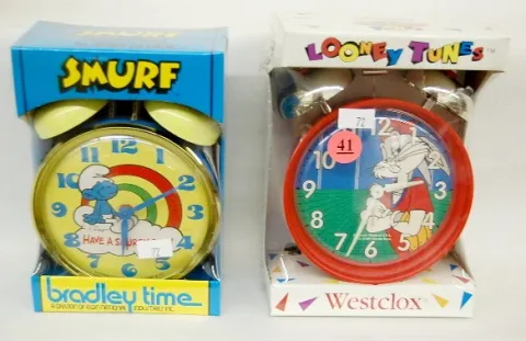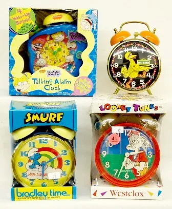 4 Cartoon Character Alarms: Smurf; Big Bird; Bugs Bunny; Rugrats talking alarm; not tested.