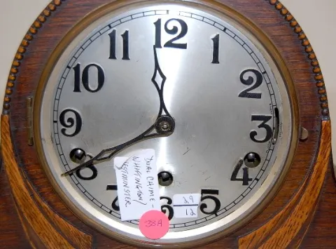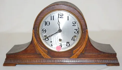 Oak Westminster Chimes Carved Mantle Clock Oak Westminster Chimes Carved Mantle Clock: dual chime Whittington and Westminster; no bezel; 9 rod strike.
