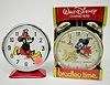 2 Mickey Mouse Vintage Alarm Clocks: 1.) French Bayard; red Mickey. 2.) Bradley 2 bell; with Mickey and Pluto; original package.